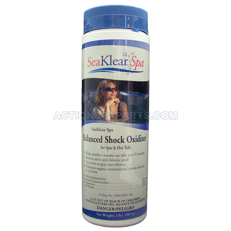 Sea-Klear Balanced Shock Oxidizer 2lb bottle for use in spas, and hot tubs.