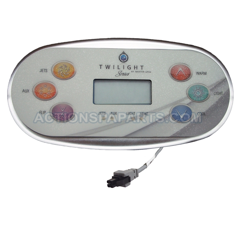 Master spa twilight series 6 button control panel with overlay.
