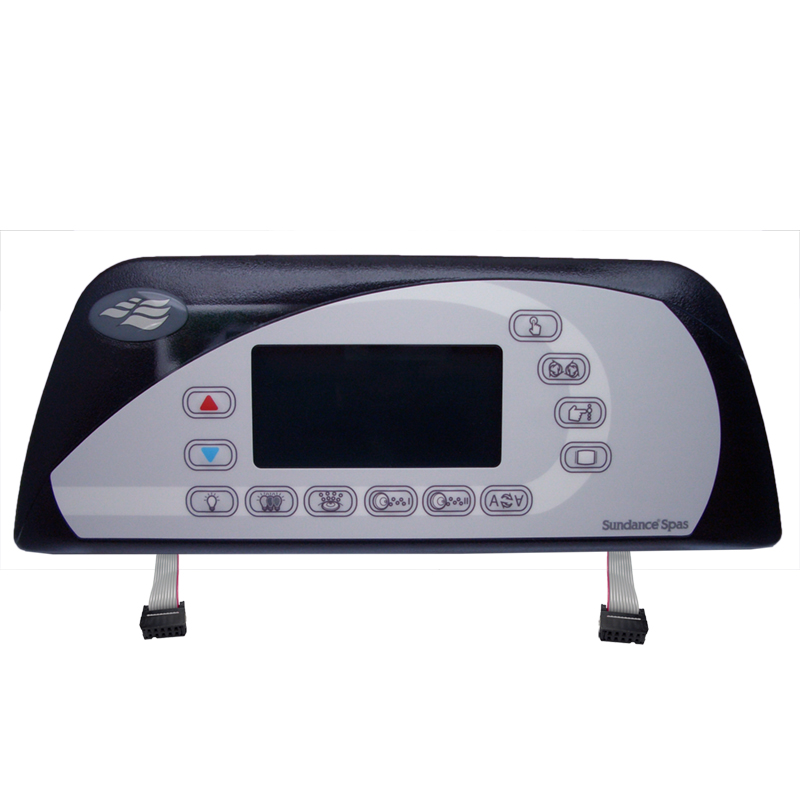 Sundance® topside control panel for 2 or 3 pump 880 systems 2012+.5’ Female 10 Pin Ribbon 5’ Female 10 Pin Ribbon -That goes to DCU12.5†x 4.7†Overall Size TrapezoidLeft: Up, Down Right: Select, Cycle, Mode, DisplayBottom: Light On/Off, Light Mode, Blower, Jets 1, Jets 2 / 3, InvertManufacturer: Sundance® / Jacuzzi®MPN: 6600-882