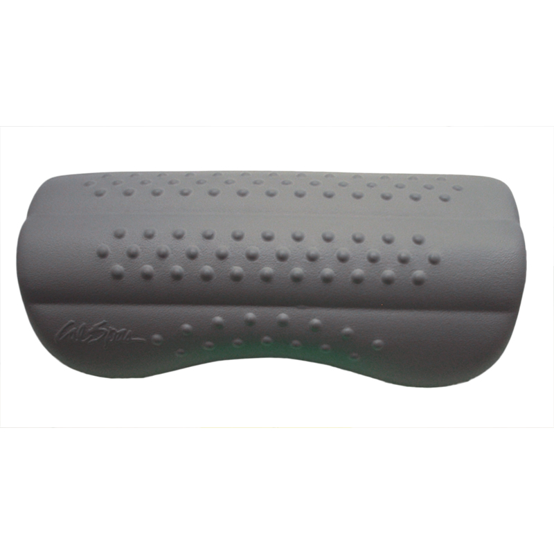 Cal spa cancun pillow with logo and nubs in silver (light gray).At widest 11†x 4-1/2â€Manufacturer: Cal SpasMPN: ACC01400863
