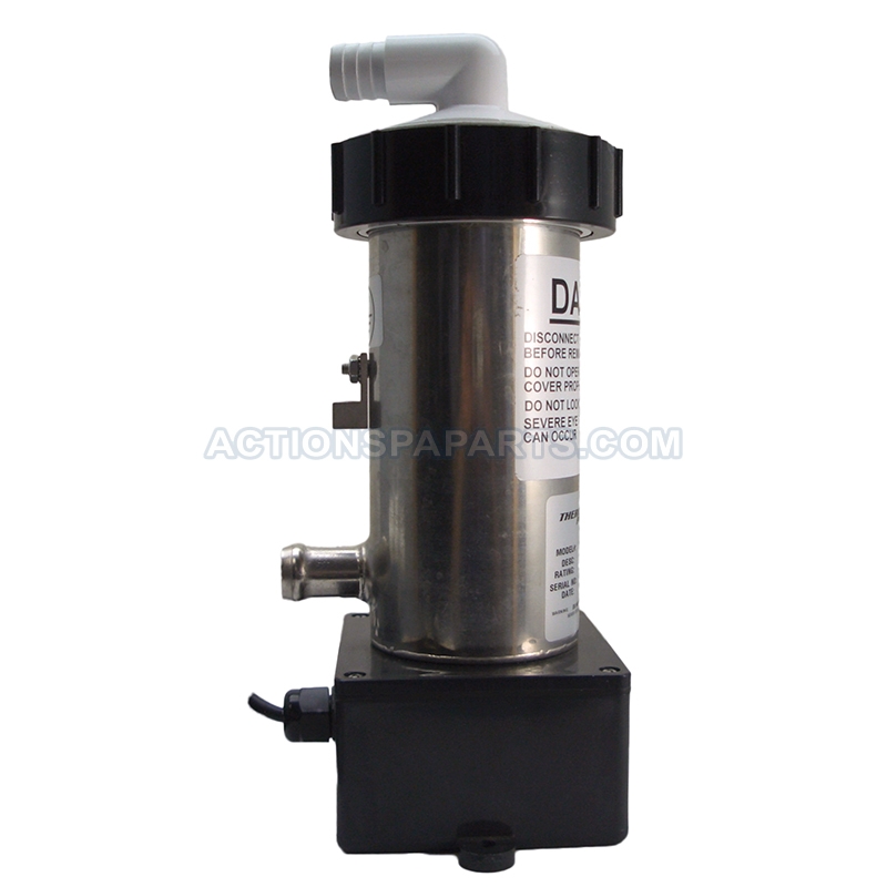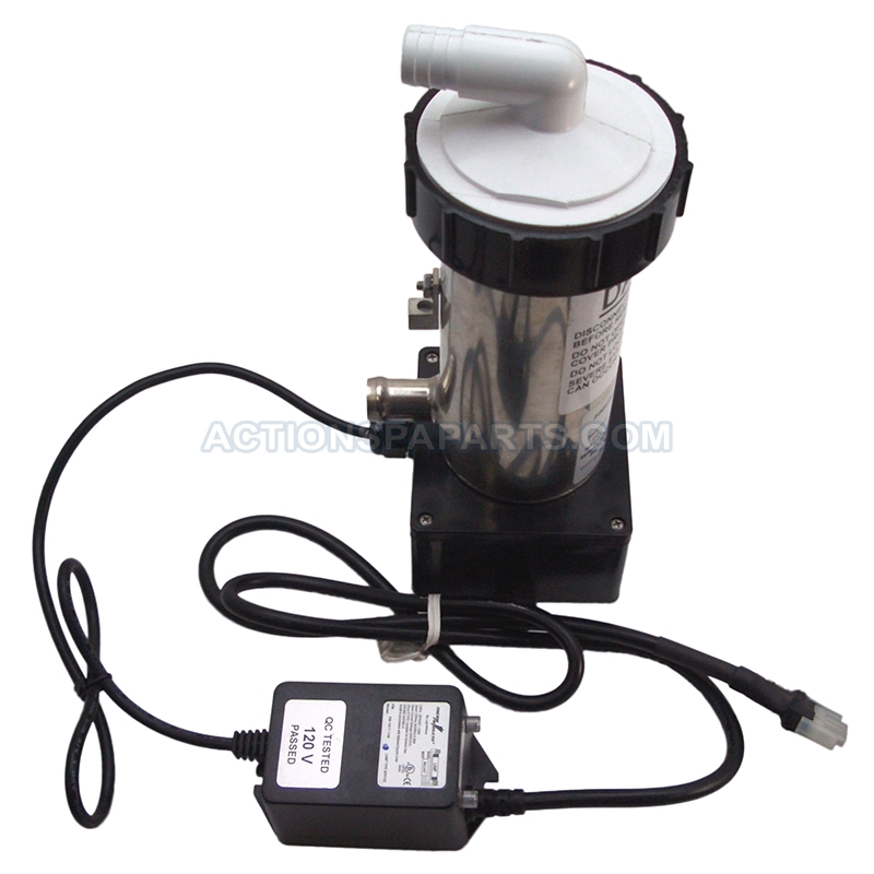 120 volt ultra violet generator with 3/4" barbs, for sanitizing of indoor spas and fountains.